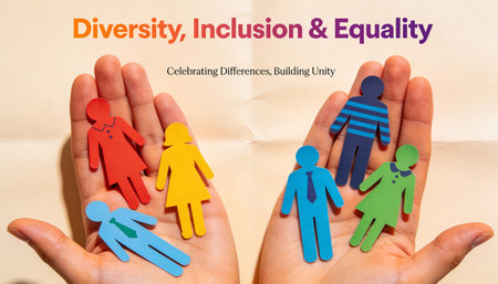 Concept paper design, text Diversity and Inclusivity. Jigsaw puzzle elements and multicolor felt. Hand hold paper heart.