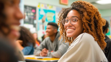 The more bright young minds, the better the world becomes. a group of teenagers in a classroom at high school.
