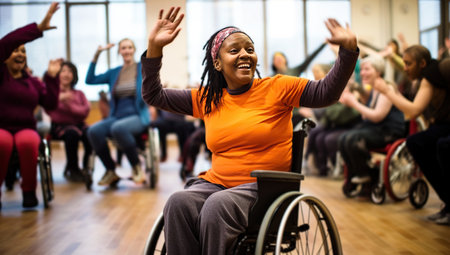Inclusive Dance: Joyful Wheelchair Dancer in Center