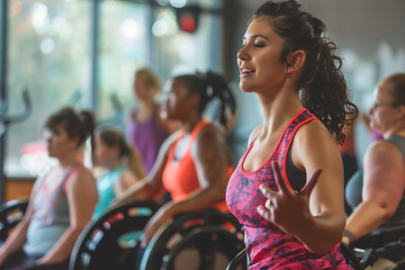 Group workout celebrating strength and positivity in a vibrant fitness class.