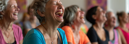 Laughter yoga in park joyfulness therapeutic laughter