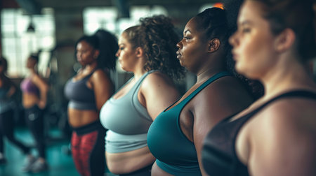 Group of 3 oversize women posing in studio - Beautiful girls accepting body imperfection, beauty shots in studio - Concepts about body acceptance, body positivity and diversity