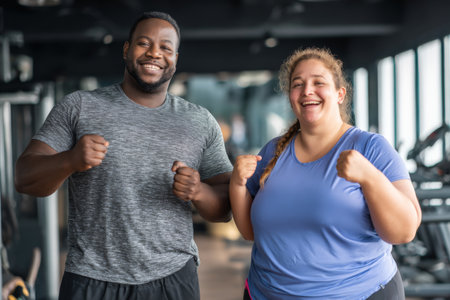 Personal trainer working with curvy woman explaining her the exercises routine - Sporty people lifestyle concept