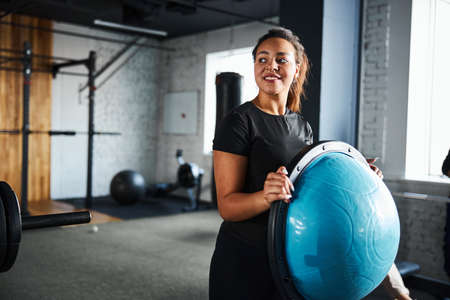Young woman making pilates and functional training at the gym. Concept about sport, fitness and weight loss