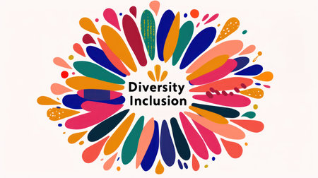 A vibrant image symbolizing diversity and inclusion with people around a central message.