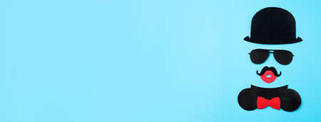 Father's day background design concept. Top view of color paper decoration layout ideas on blue table background with copy space.