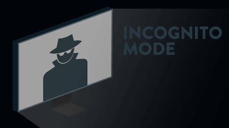 Vector illustration of a computer screen in an incognito mode with an icon and text headline