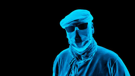 portrait of a man wearing a mask cap glasses in x-ray. 3d rendering