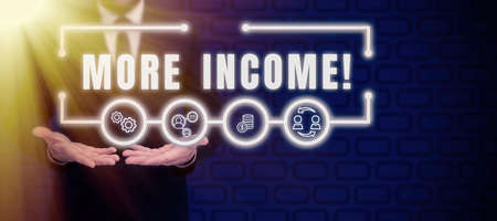 Inspiration showing sign More Income. Business approach Additional money receives for an exchange of good or services Businessman in suit holding notepad symbolizing successful teamwork.