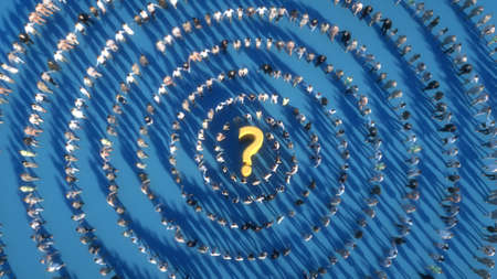 Modern graphic design featuring a puzzled backdrop with red question marks, expressing confusion and the quest for solutions in business and education.