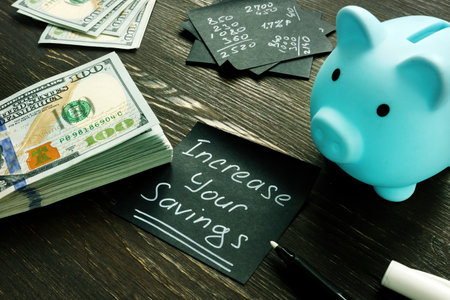 Lightbox board with word SAVINGS in black letters around US dollar banknotes. Money, Business, finance, investment, saving. Cash bill. Business budget of wealth and prosperity finance