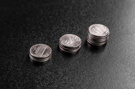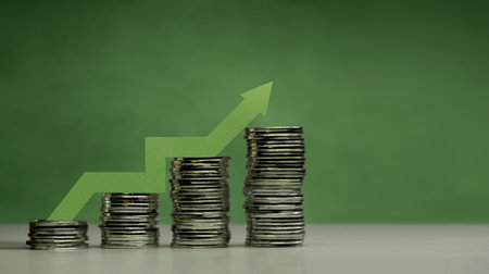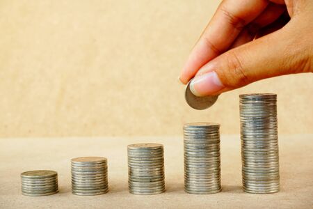 Stock financial indices and growth stacking coin and financial costs wisely and carefully, investment and saving concept.
