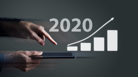 Business concept of 2020 top view with money bills. New year management, and financial plan