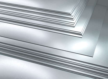 Silver showing abstract arrangement of polished silver metal rectangular plates on white surface. resolution...