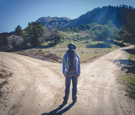 Standing on a junction, choosing a direction, new opportunity, decision making concept, following a path