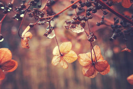 dried flowers in the garden after the winter rain Vintage
