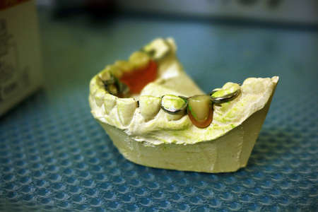 Model with dentures of teeth in dental laboratory