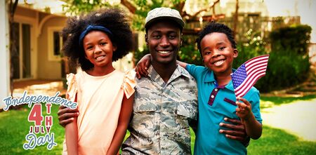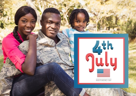 Independence day against portrait of soldier with family