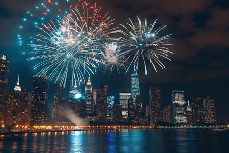 Spectacular Fireworks Display Over the Waterfront on Independence Day.