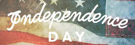 Independence day lettering on blue background with american flag around. USA symbol banner. Fourth of july national holiday. Patriotic symbol