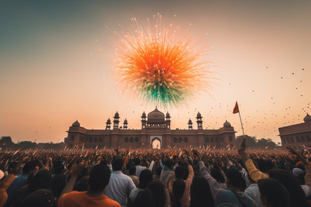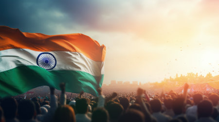 India Republic Day. A vibrant scene unfolds on India Republic Day: Tri-color flags flutter in the patriotic breeze as people celebrate democracy, unity, and national pride