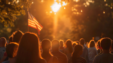 USA flag and people,Independence Day.National Day celebration,silhouette,generative ai