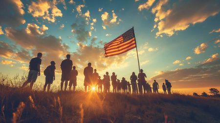 USA flag and people,Independence Day.National Day celebration,silhouette,generative ai