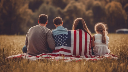 USA flag and people,Independence Day.National Day celebration,silhouette,generative ai