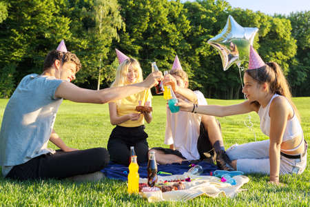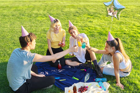 Teenage birthday party picnic on the grass in the park