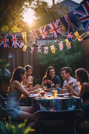 A family backyard barbecue with Australian flags, the joyful gathering. Australia Day