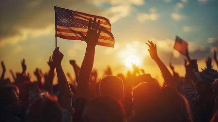 USA flag and people,Independence Day.National Day celebration,silhouette,generative ai