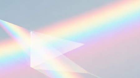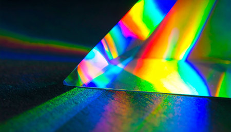 abstract background with rainbow-colored light refractions and glowing prism effects on dark backdrop.