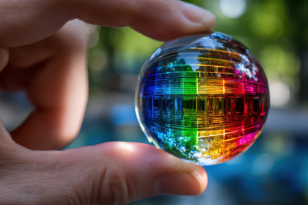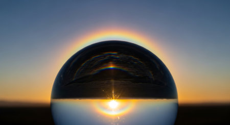 Reflection of a rainbow in a crystal ball with a field in the background