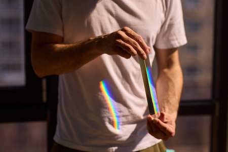 Sunlight creating a colorful prism effect through a crystal glass.