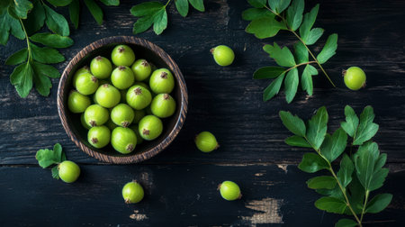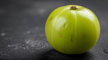 Fresh and vibrant indian gooseberry, amla, resting on a dark, rustic surface