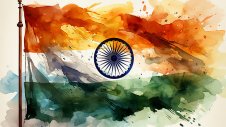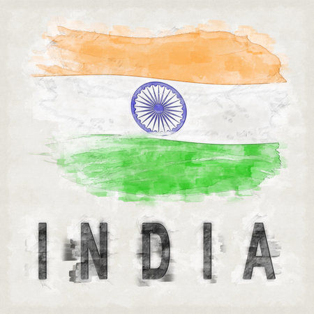 Watercolor painting of flag of India in colors of Indian flag.