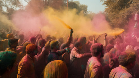 Unidentified people during the Holi festival at Kolkata, AI Generated