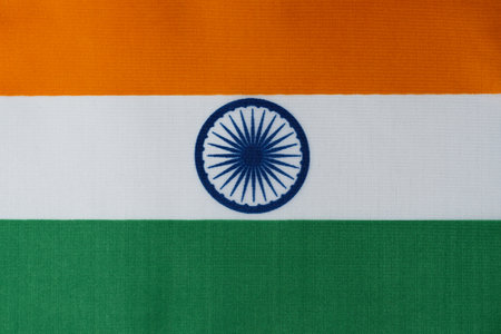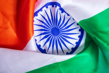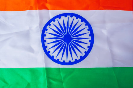 Indian national flag with saffron, white and green color bands and Ashoka chakra wheel in the middle