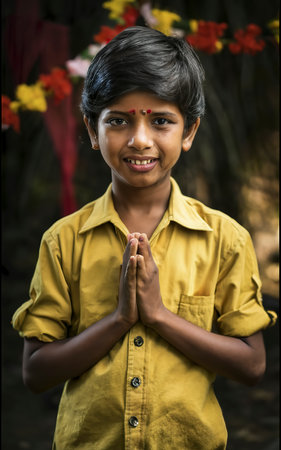 Front view kid celebrating tamil new year