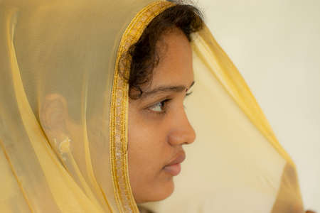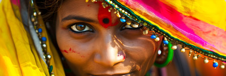 Portrait of a young Indian woman in colorful clothes.