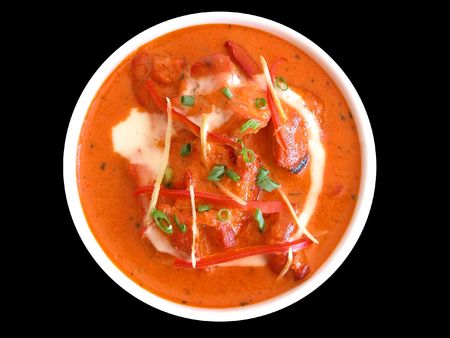 Chicken tikka masala in a spicy tomato sauce. Indian cuisine