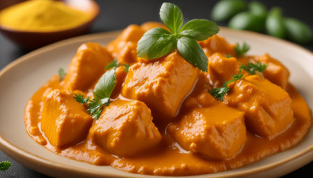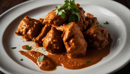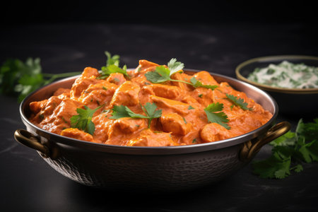 garnished chicken tikka masala with fresh cilantro, created with generative ai