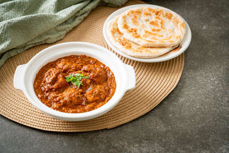 chicken tikka masala spicy curry meat food with roti or naan bread - Indian food style