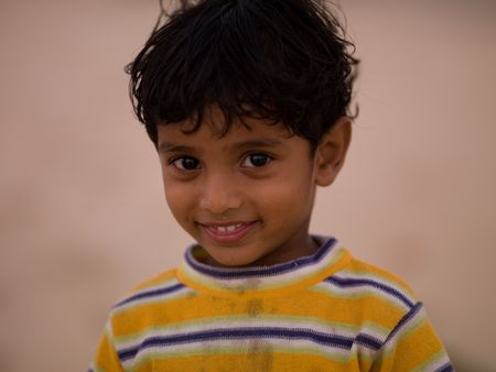 Close up of a young smiling boy in India