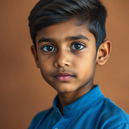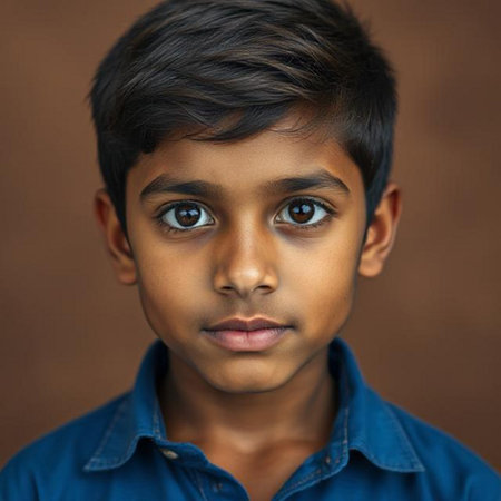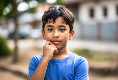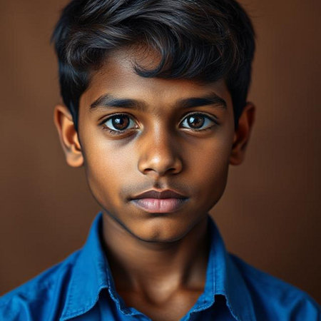 Portrait of a young Indian boy looking at the camera with a serious expression