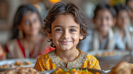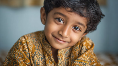 Cheerful Indian Kid Smiling Brightly, Showcases Joyful Expression and Cute Charm