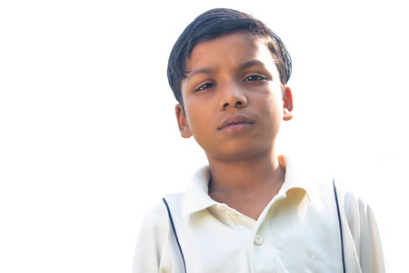 A boy in cricket uniform standing