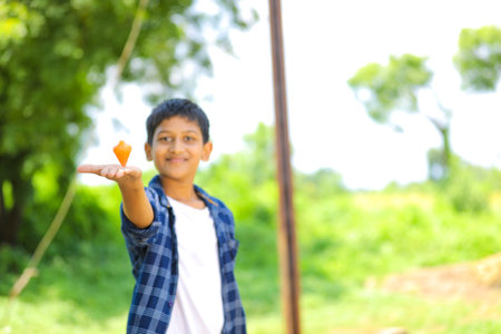 cute indian child at agriculture field