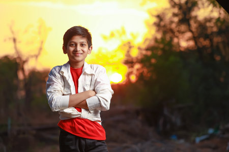 Pali Rajasthan, India-‎November 01 , ‎2021.Close-up Portrait photo of a young indian boy child outside in nature