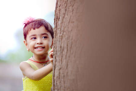 Cute indian baby child giving expression over nature background